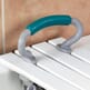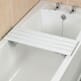 Quatre supports réglables indépendamment sur le dessous de la planche de bain permettent de l'ajuster facilement pour s'adapter aux baignoires avec des largeurs internes comprises entre 400 mm et 600 mm.
