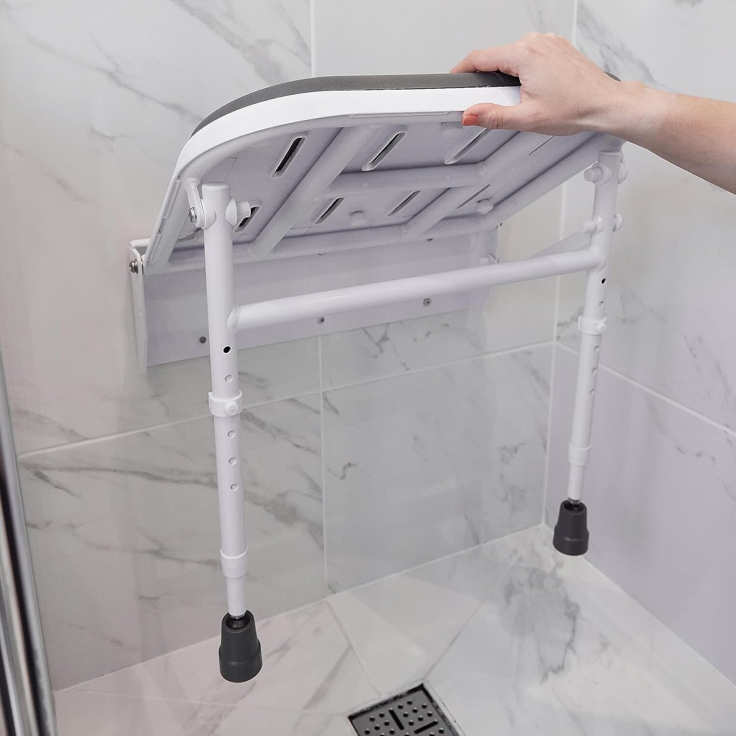 - Siège de douche rembourré, pliable avec pieds (autres finitions disponibles)