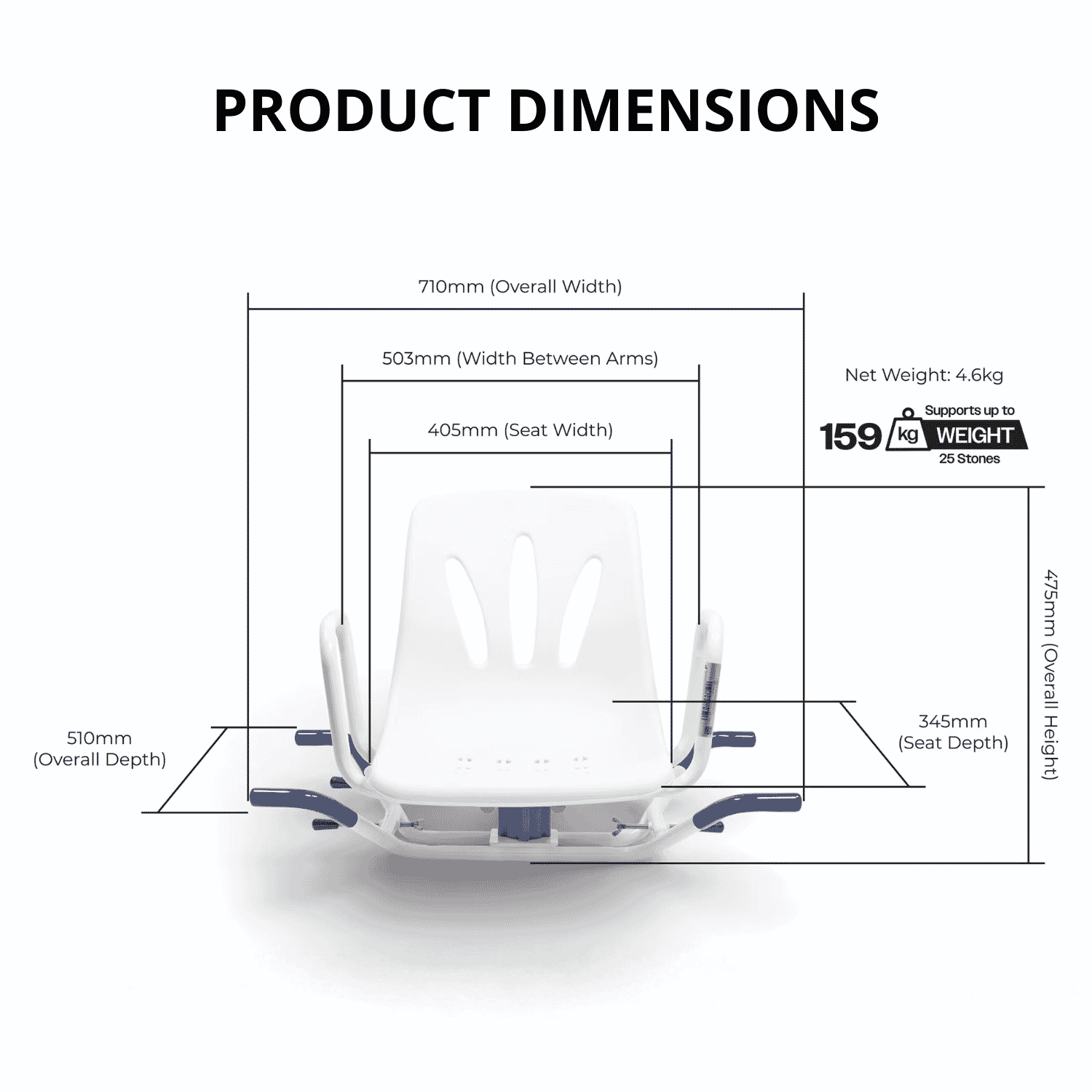 Le siège de bain pivotant Winchester est conçu pour soutenir les utilisateurs qui ont des difficultés à entrer dans une baignoire en raison d'une mobilité réduite, de problèmes d'équilibre ou de douleurs articulaires. Le siège pivotant permet à l'utilisateur de s'asseoir en toute sécurité à l'extérieur de la baignoire avant d'être doucement tourné en position au-dessus de la baignoire. Cela aide à réduire le risque de glissades, de tensions et de chutes, rendant le bain plus confortable et plus sûr.