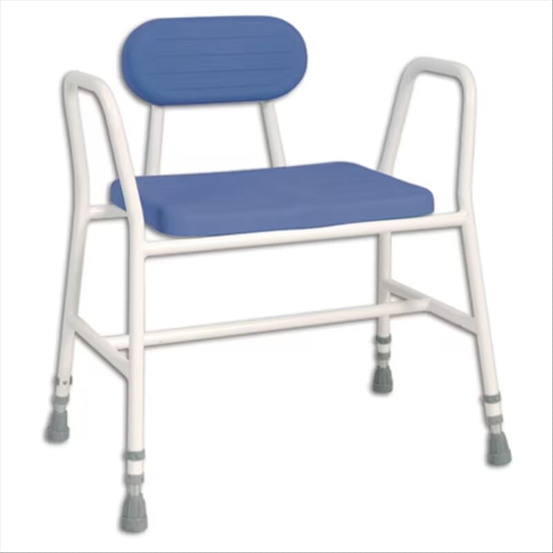 Cette chaise de douche moulée en polyuréthane apporte un confort optimal pendant la toilette.Pour une meilleure durabilité, son cadre est revêtu d’époxy.