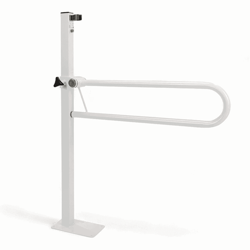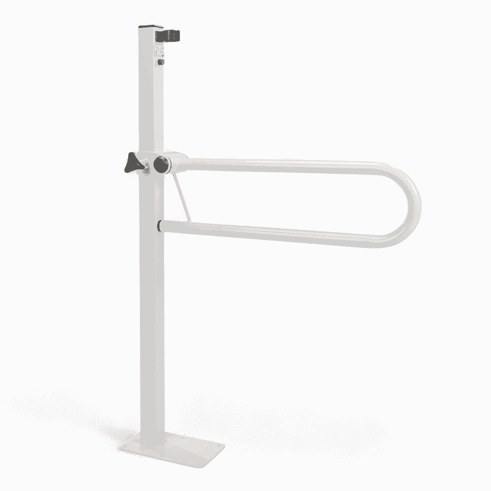Contrairement aux barres d'appui murales, ce modèle se fixe solidement au sol, ce qui le rend idéal lorsque la solidité ou le positionnement du mur pose problème. Le bras de support en forme de U offre une assistance fiable et peut être replié à la verticale lorsqu'il n'est pas utilisé, aidant à économiser de l'espace et à maintenir une apparence soignée.