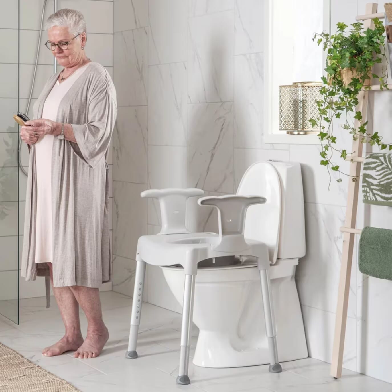 Equipez vos toilettes du cadre de toilettes Swift (Etac) pour plus de confort et d’autonomie. Hauteur ajustable et accoudoirs amovibles.