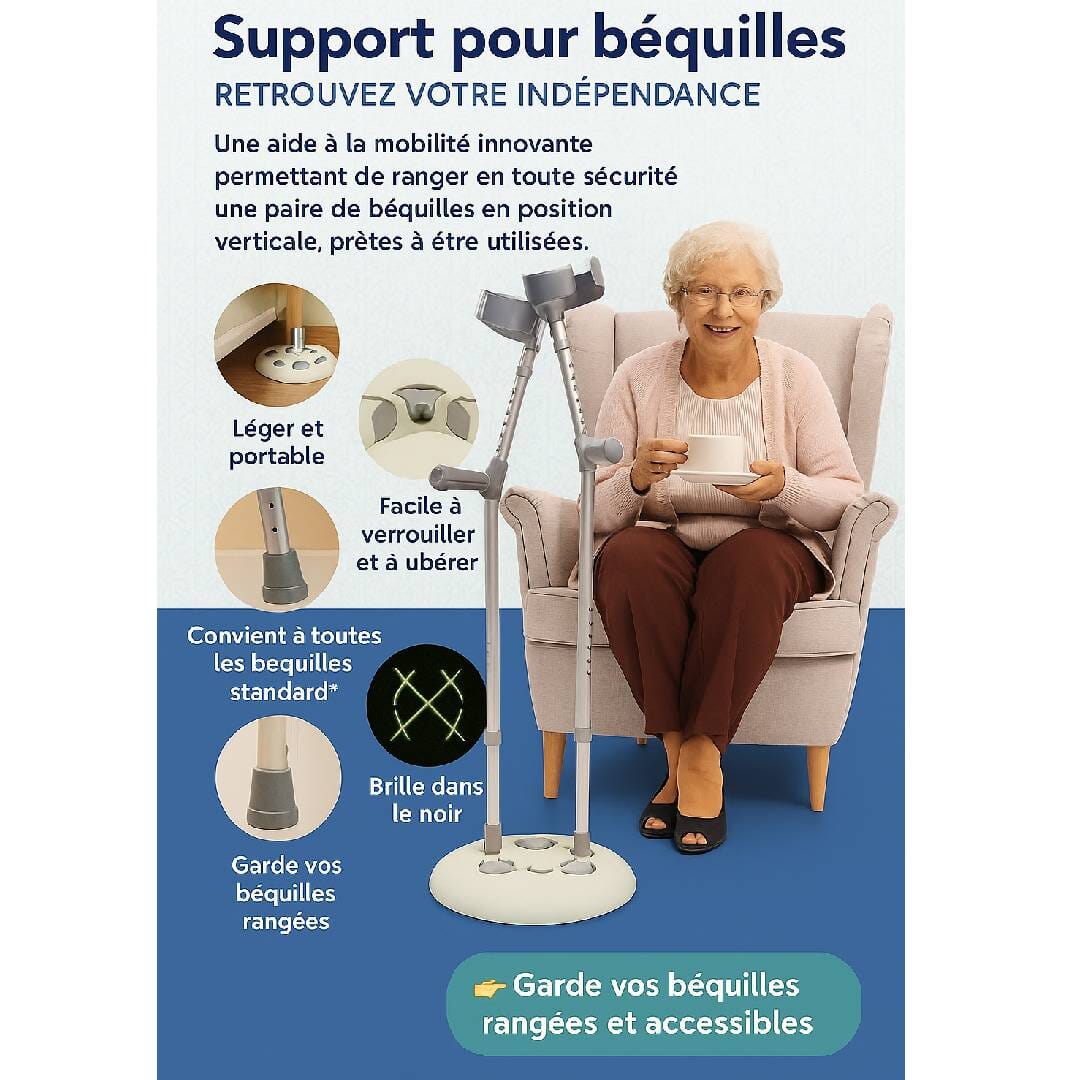 - Garde les béquilles sécurisées, organisées et facilement accessibles, améliorant ainsi la mobilité quotidienne