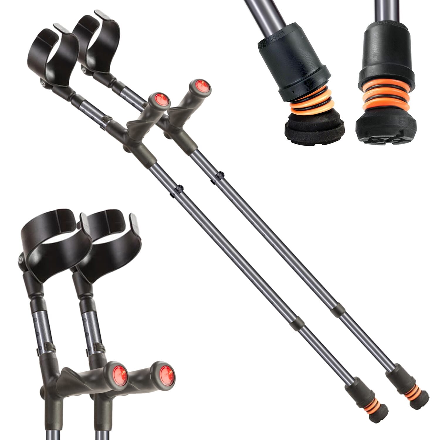 Ce qui distingue ces béquilles, c'est l'embout Flexyfoot, un composant unique qui agit comme un amortisseur lorsque la béquille entre en contact avec le sol. Cette innovation minimise l'inconfort et les impacts brusques. Il est important de noter que la flexibilité de l'embout assure un contact constant avec le sol, offrant une adhérence et une sécurité constantes.