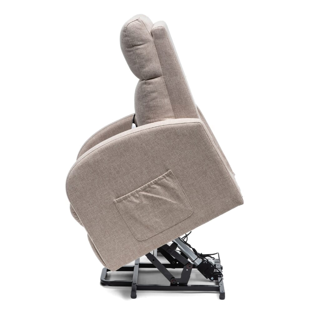 Ce fauteuil à moteur unique est alimenté par un système d'entraînement OKIN fiable, permettant à l'utilisateur de s'incliner doucement ou de se lever en appuyant simplement sur un bouton. La télécommande à deux boutons est intuitive et facile à utiliser, ce qui la rend idéale pour les utilisateurs ayant une dextérité ou une mobilité limitées.