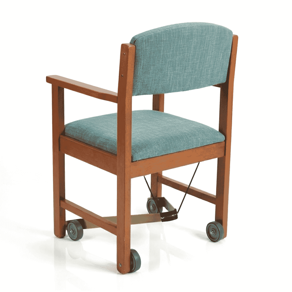 En utilisant un simple levier actionné par le pied, le Millie Mova active un mécanisme de roue arrière qui soulève légèrement les pieds avant de la chaise. Cela permet à la chaise de rouler en douceur sans traîner, protégeant le sol et prolongeant la durée de vie de la chaise. Lorsque le levier est relâché, les roues se désengagent automatiquement, empêchant tout mouvement indésirable et permettant à l'utilisateur de s'appuyer sur la chaise sans risque de glisser. Ce système de freinage est particulièrement rassurant pour les personnes qui ont des difficultés à se tenir debout et qui comptent sur la chaise pour se soutenir lors des transferts.