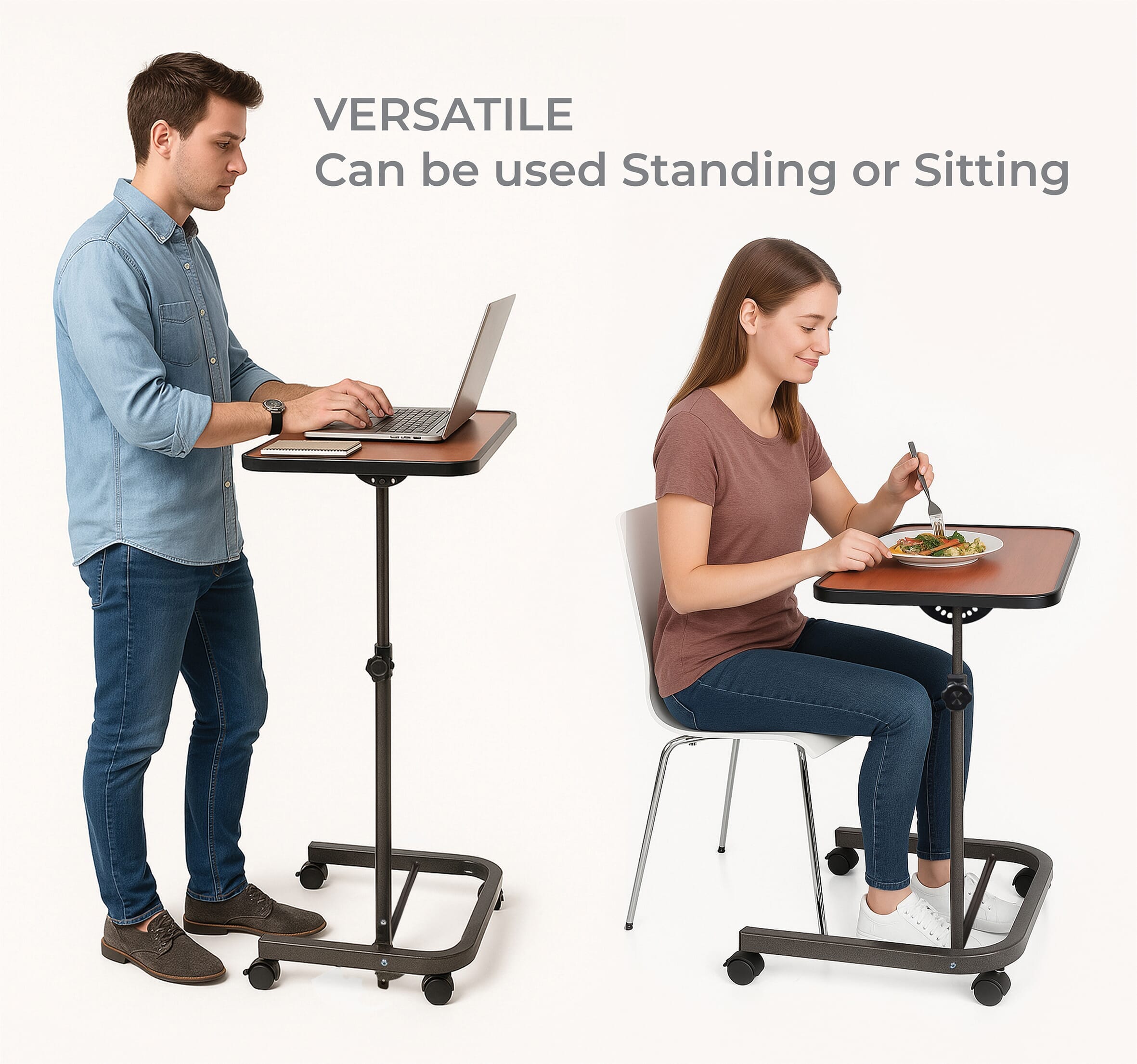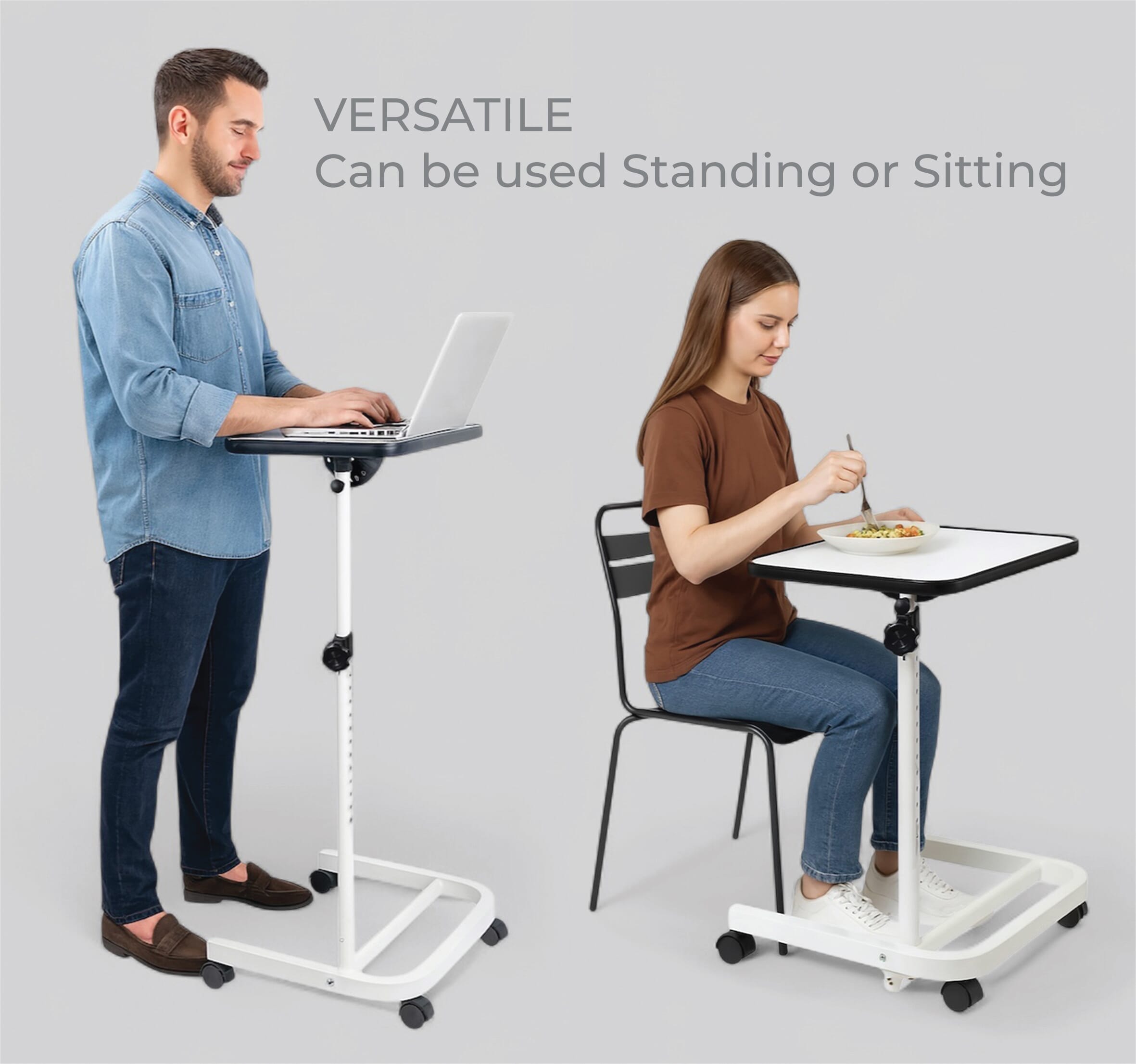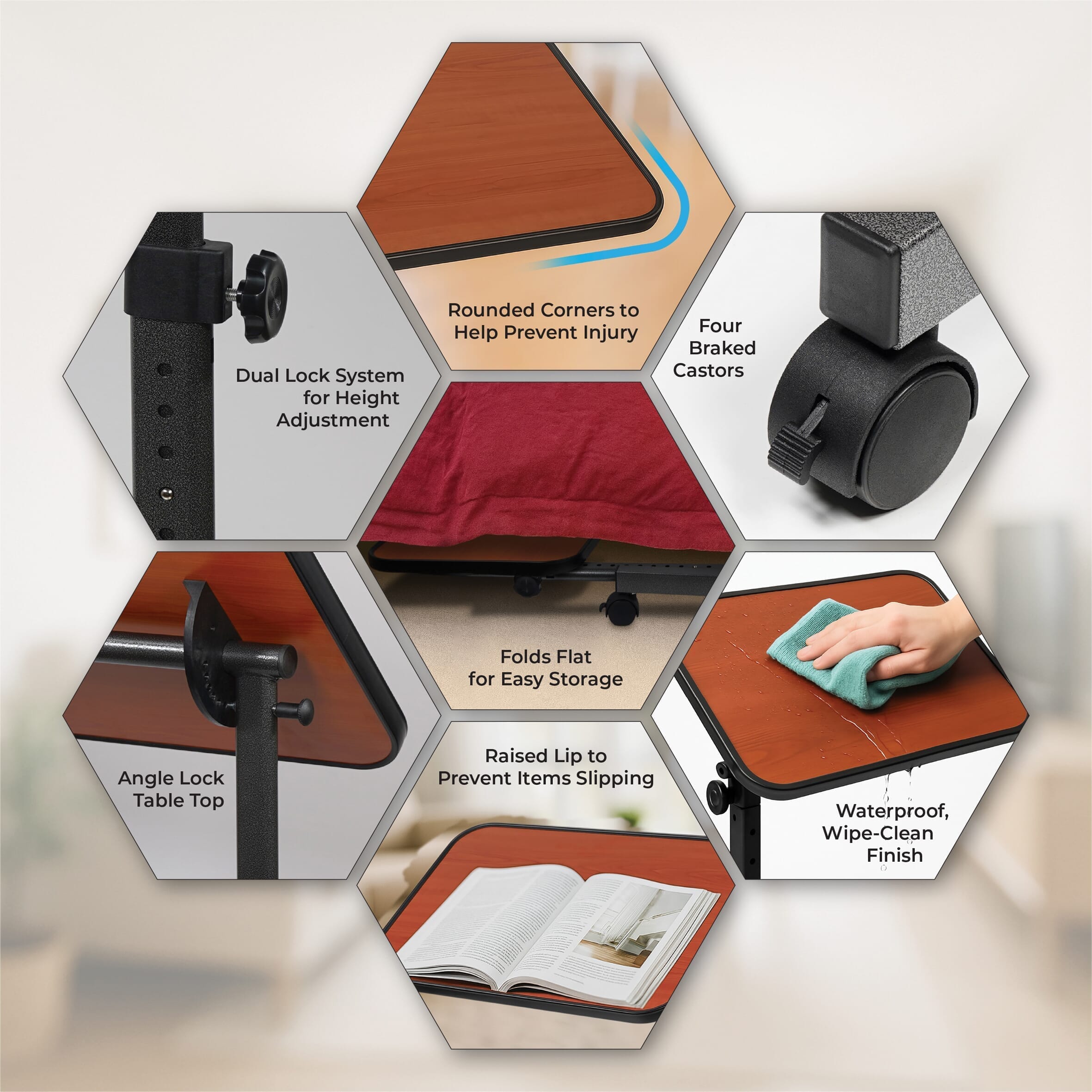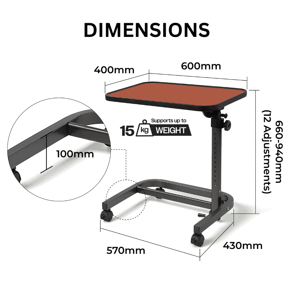 La fonction d'inclinaison douce offre sept réglages d'angle, ce qui la rend simple à ajuster pour lire, écrire ou manger. Le cadre en acier durable assure solidité et fiabilité à long terme, tandis que les quatre roulettes freinées offrent un mouvement fluide et un positionnement stable.