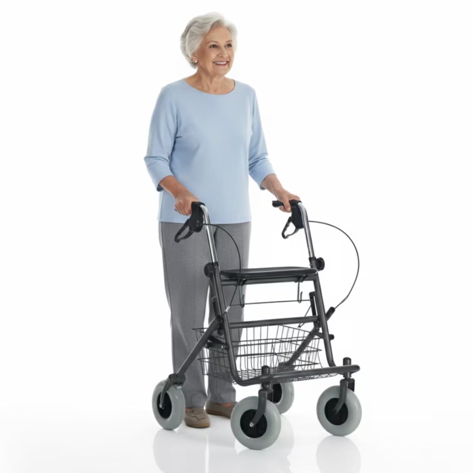 Le déambulateur 4 roues avec siège et panier est une aide à la marche stable et confortable, pensée pour accompagner les personnes âgées ou à mobilité réduite dans leurs déplacements quotidiens. Compact mais robuste, il offre une excellente stabilité, un siège pratique pour les pauses et un panier spacieux pour transporter vos effets personnels ou vos courses sans effort, que ce soit à l’intérieur ou en extérieur.