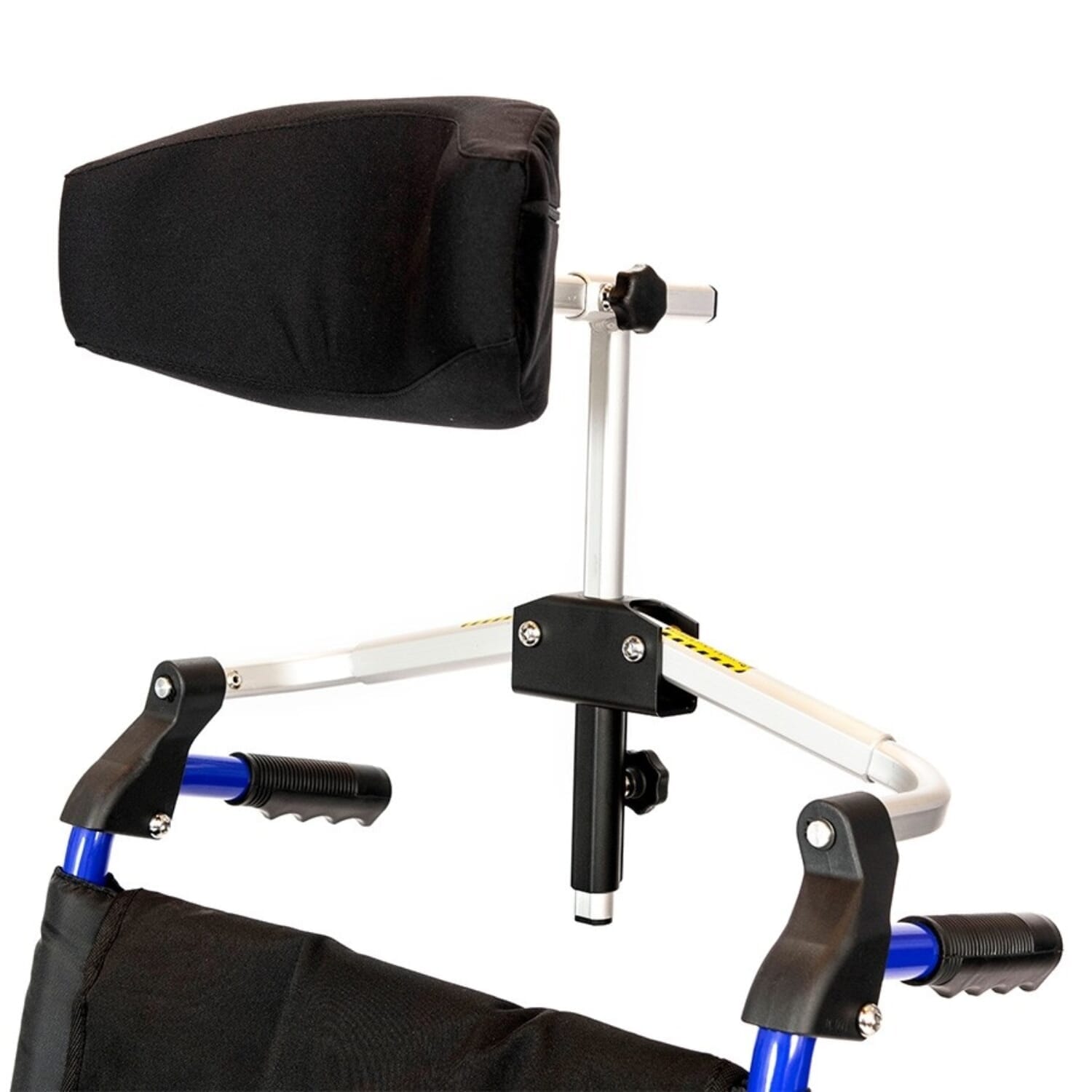 Grâce à sa structure en aluminium léger et résistant, l’appui-tête reste robuste tout en étant simple à manipuler. Un mécanisme de pliage intégré permet de le rabattre rapidement, ce qui facilite le transport et le rangement du fauteuil. Le coussinet de tête, rembourré et recouvert d’un tissu doux, assure un confort durable même lors d’utilisations prolongées.