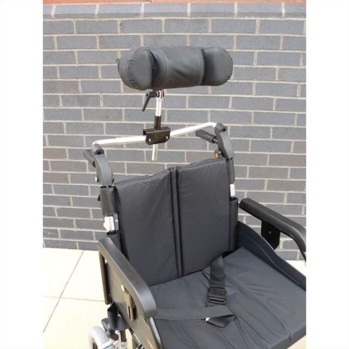 Compatible avec les fauteuils roulants dont la largeur d’assise se situe entre 40 et 55 cm, cet appui-tête accepte des poignées de poussée jusqu’à 2,5 cm de diamètre.