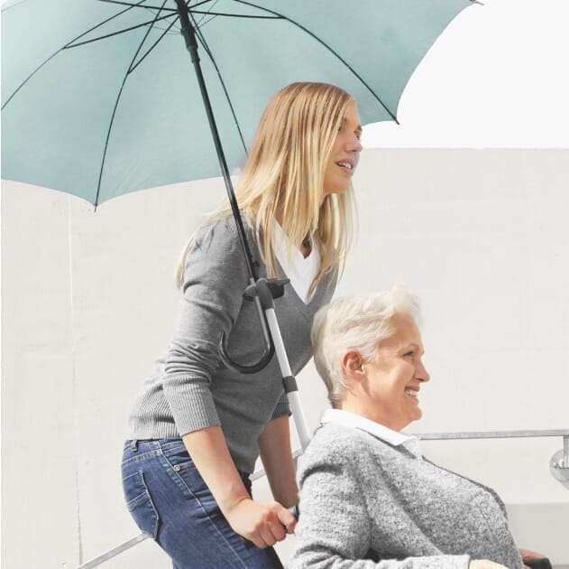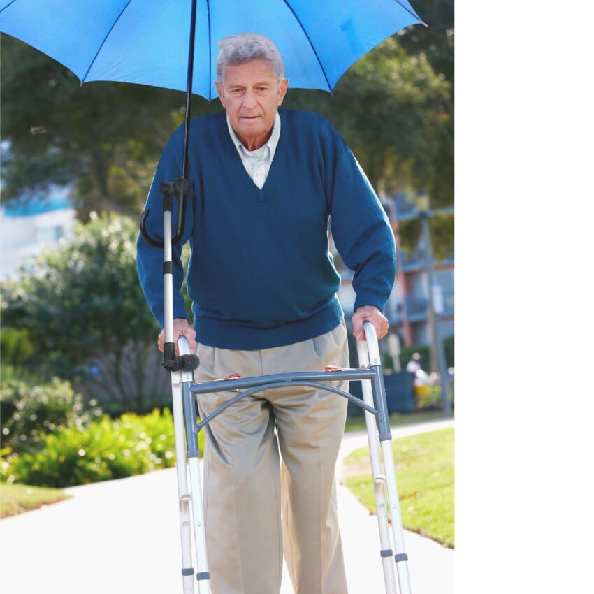 Le porte-parapluie est un accessoire pratique pour les utilisateurs de fauteuils roulants et les personnes utilisant des aides à la marche, permettant de positionner un parapluie en toute sécurité sans avoir besoin de le tenir. Il se fixe sur les fauteuils roulants de transport ou auto-propulsés, ainsi que sur les déambulateurs et les marcheurs, aidant les utilisateurs à garder les deux mains libres pour diriger, freiner ou maintenir l'équilibre.