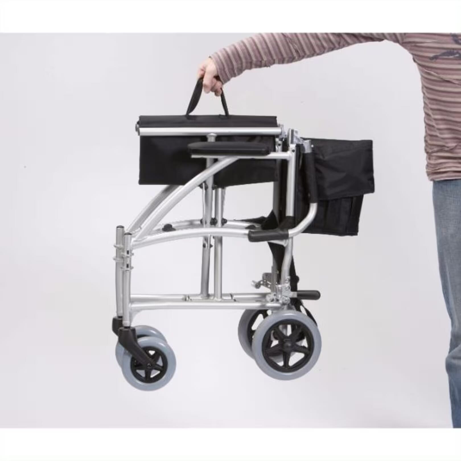 Avec sa conception en aluminium, ce fauteuil roulant de voyage léger et pliable avec sac de transport est simple à manipuler et à emporter partout.