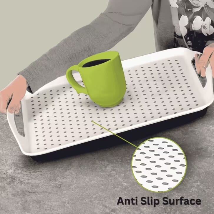 Un des grands atouts de cet accessoire pour fauteuil roulant est la présence d’une surface antidérapante Dycem intégré, réputé pour ses propriétés antidérapantes. Il empêche efficacement les objets comme les tasses, bols ou ustensiles de glisser pendant l’utilisation. Cette caractéristique réduit considérablement le risque de déversements ou d’accidents, notamment pendant les repas.