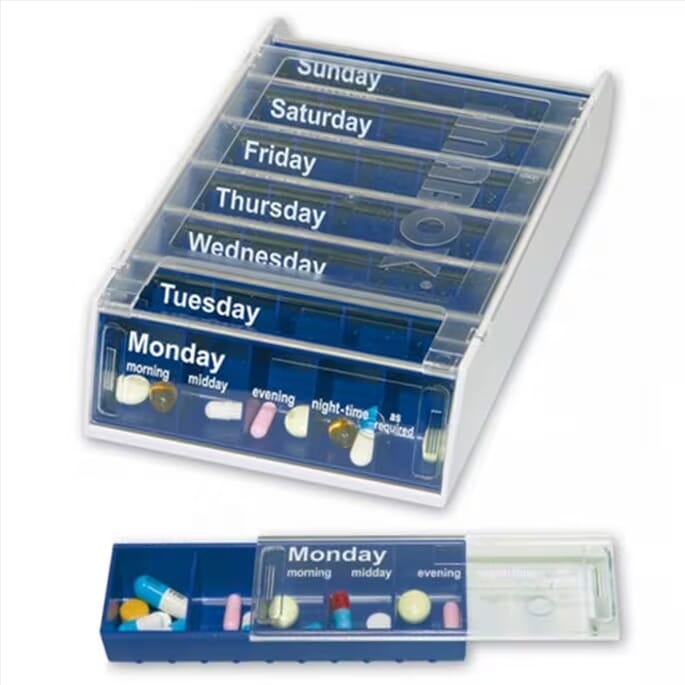 - 7 piluliers indépendants pour chaque jour de la semaine