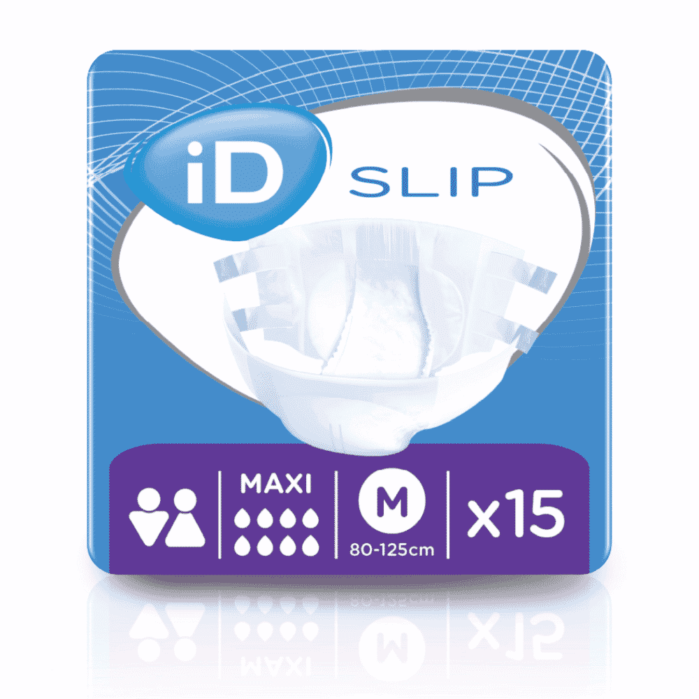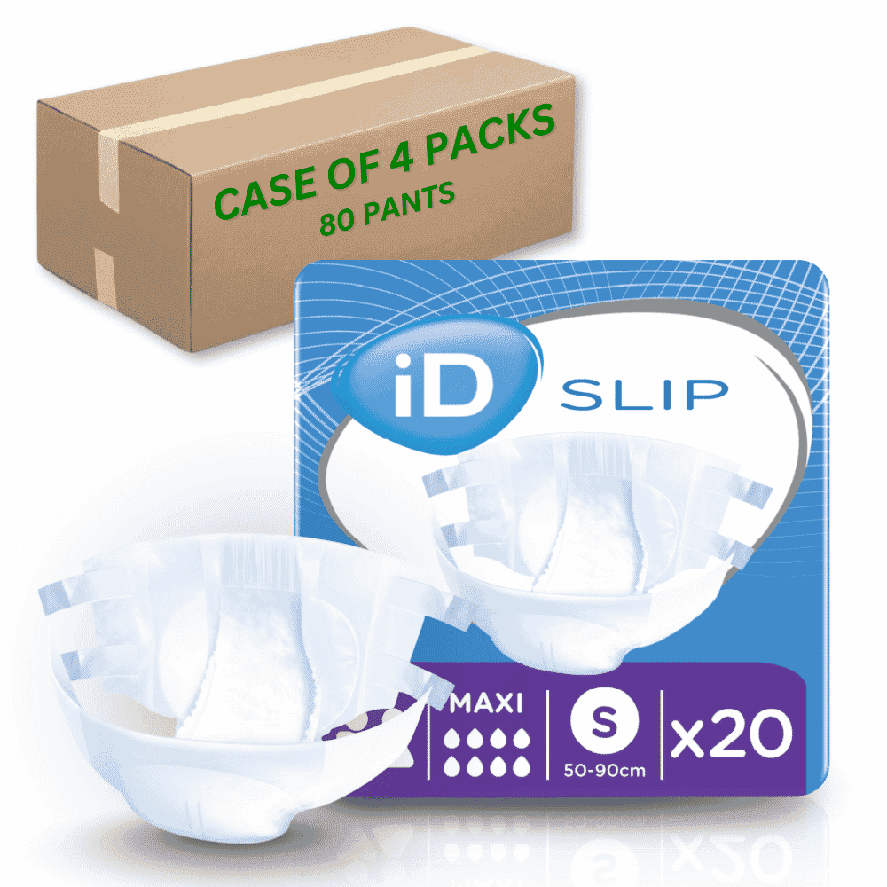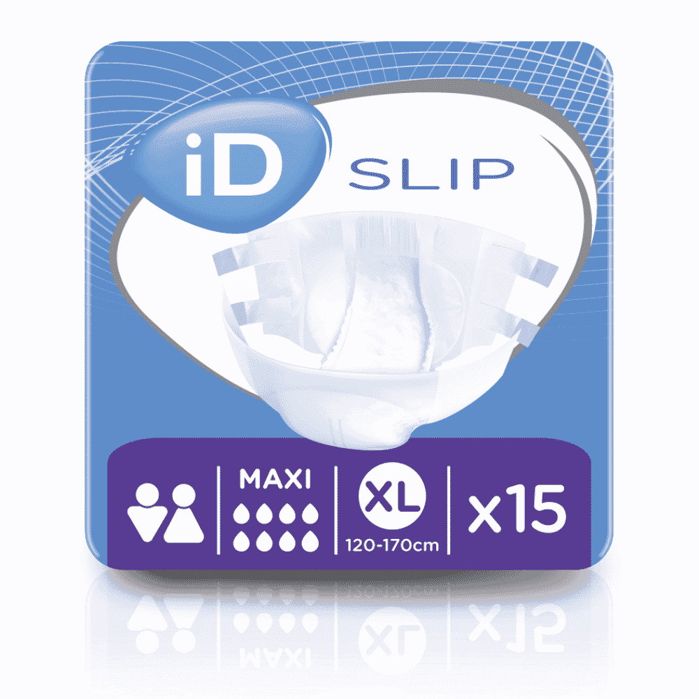 iD Slip Maxi est disponible en tailles Small, Medium, Large et XL, avec des options de caisses en gros pour les utilisateurs réguliers ou les environnements de soins.