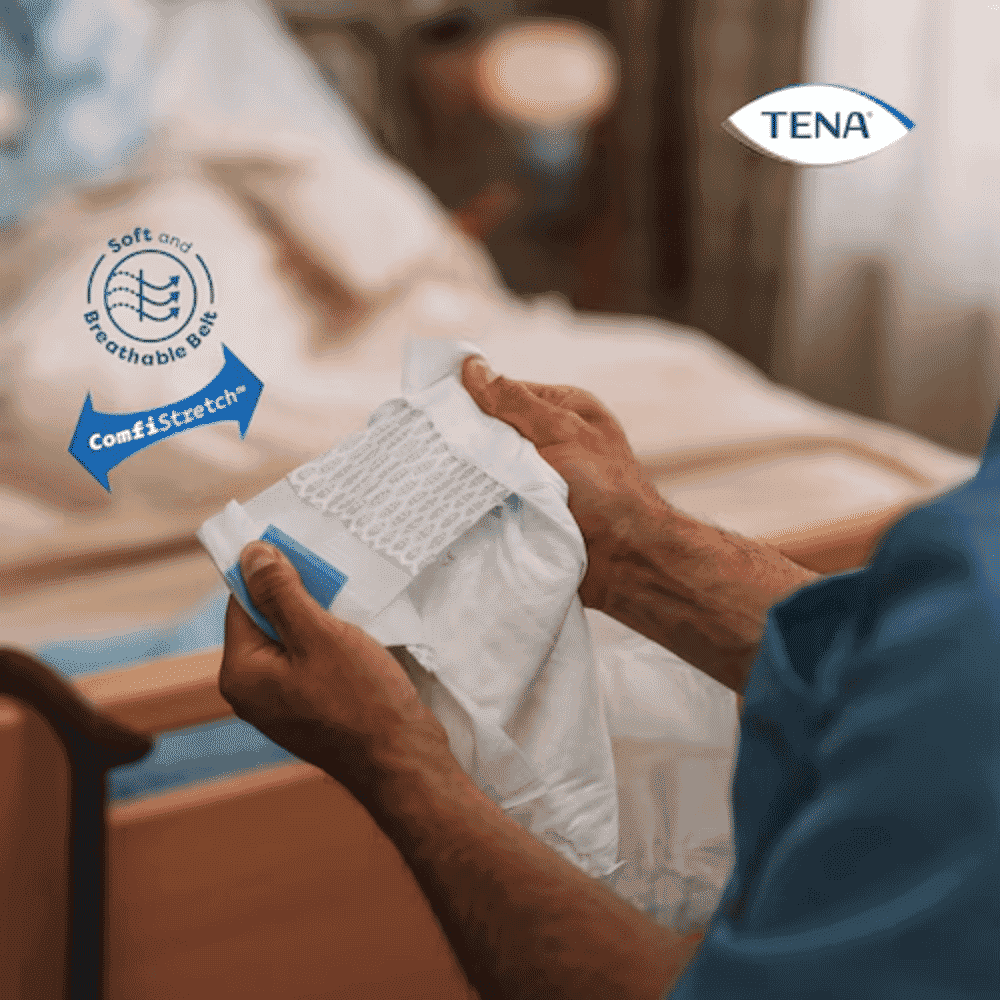 La ceinture élastique innovante COMFIStretch s'adapte à différentes morphologies et peut être fixée à l'avant ou à l'arrière pour un positionnement flexible. Cela est associé au système de fixation ajustable de TENA, où des crochets faciles à saisir s'attachent solidement à la ceinture et peuvent être refixés plusieurs fois sans perdre leur maintien, garantissant un ajustement personnalisé et une excellente sécurité contre les fuites.