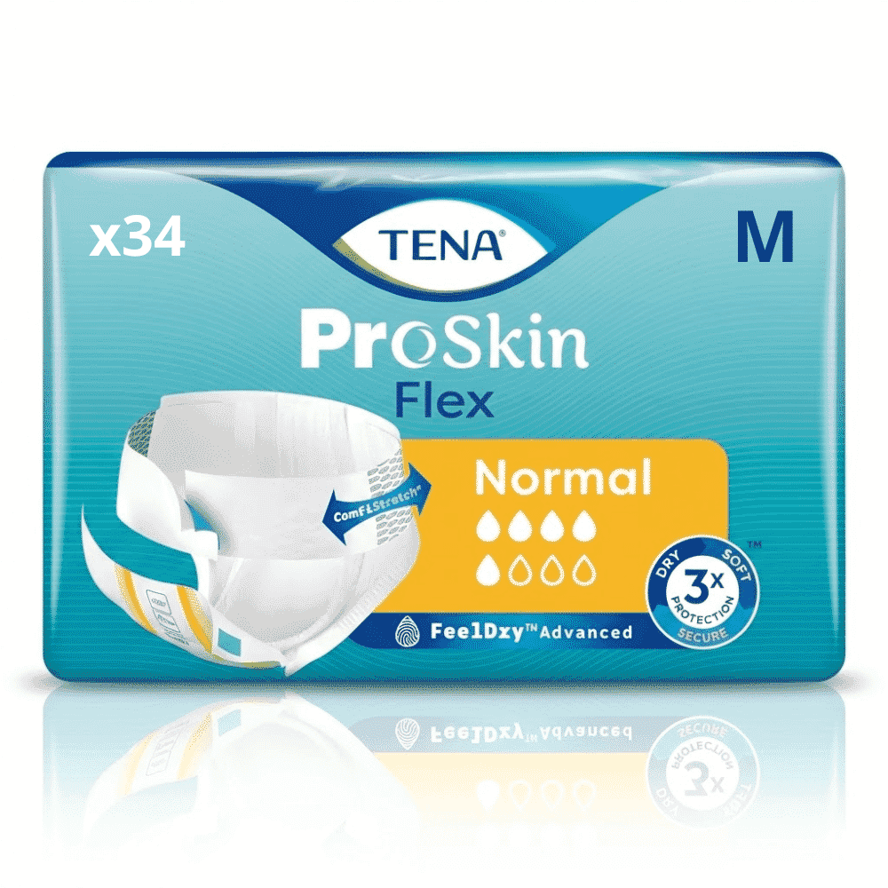 Les TENA Flex Normal sont des culottes d'incontinence à ceinture conçues pour faciliter et accélérer le changement tout en offrant un ajustement sûr et confortable pour les soins continus de l'incontinence. Adaptées aux personnes ayant une mobilité totale, limitée ou nulle, elles peuvent être appliquées ou ajustées en position debout ou allongée, aidant ainsi les soignants et les utilisateurs à obtenir une protection fiable avec un minimum de perturbations.