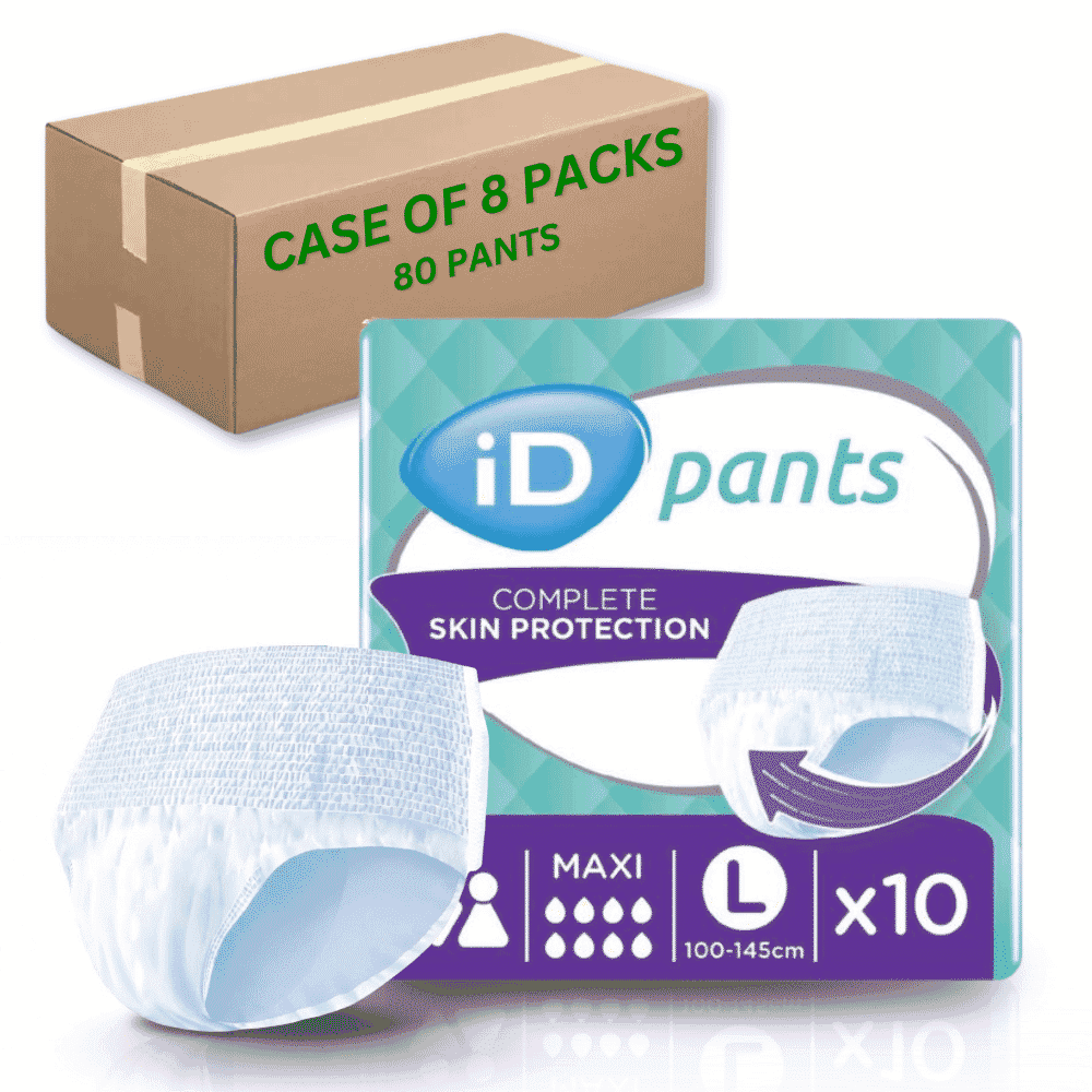 Les iD Pants Maxi sont disponibles en tailles Medium, Large et XL, avec des options de lots économiques pour les utilisateurs qui dépendent d'une protection quotidienne ou pour les établissements de soins gérant les fournitures.