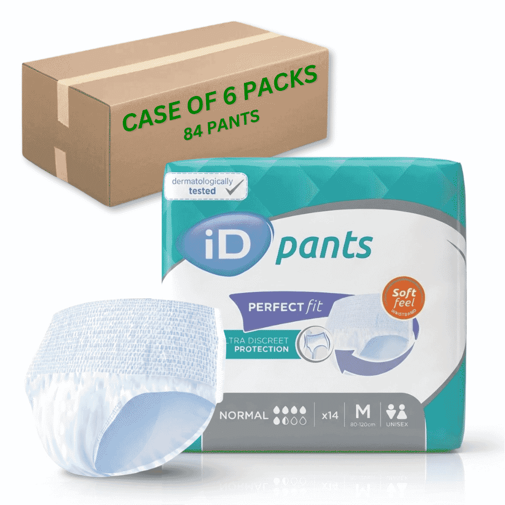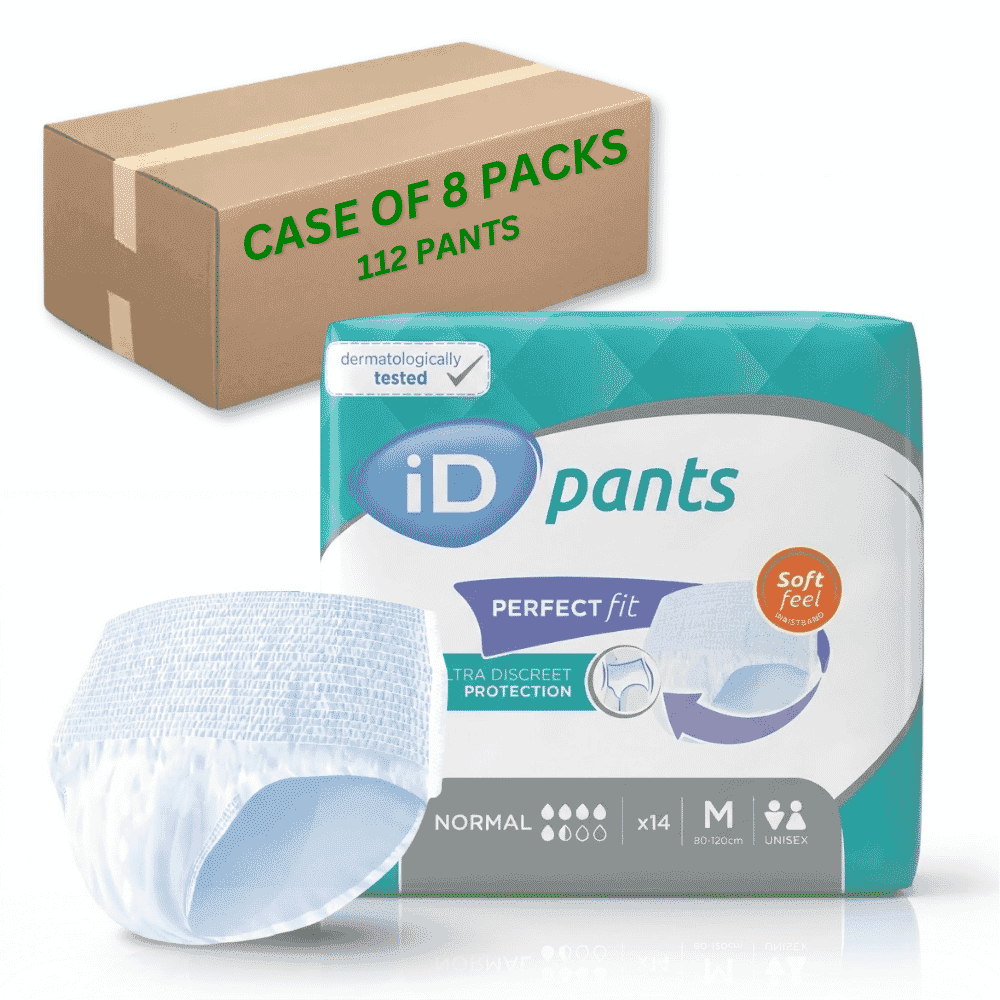 Les iD Pants Normal sont disponibles en tailles Moyenne et Grande, avec à la fois des paquets individuels et des quantités économiques en caisse. Les caisses offrent une excellente valeur pour les utilisateurs qui dépendent d'une protection quotidienne ou les aidants gérant les fournitures pour un membre de la famille.
