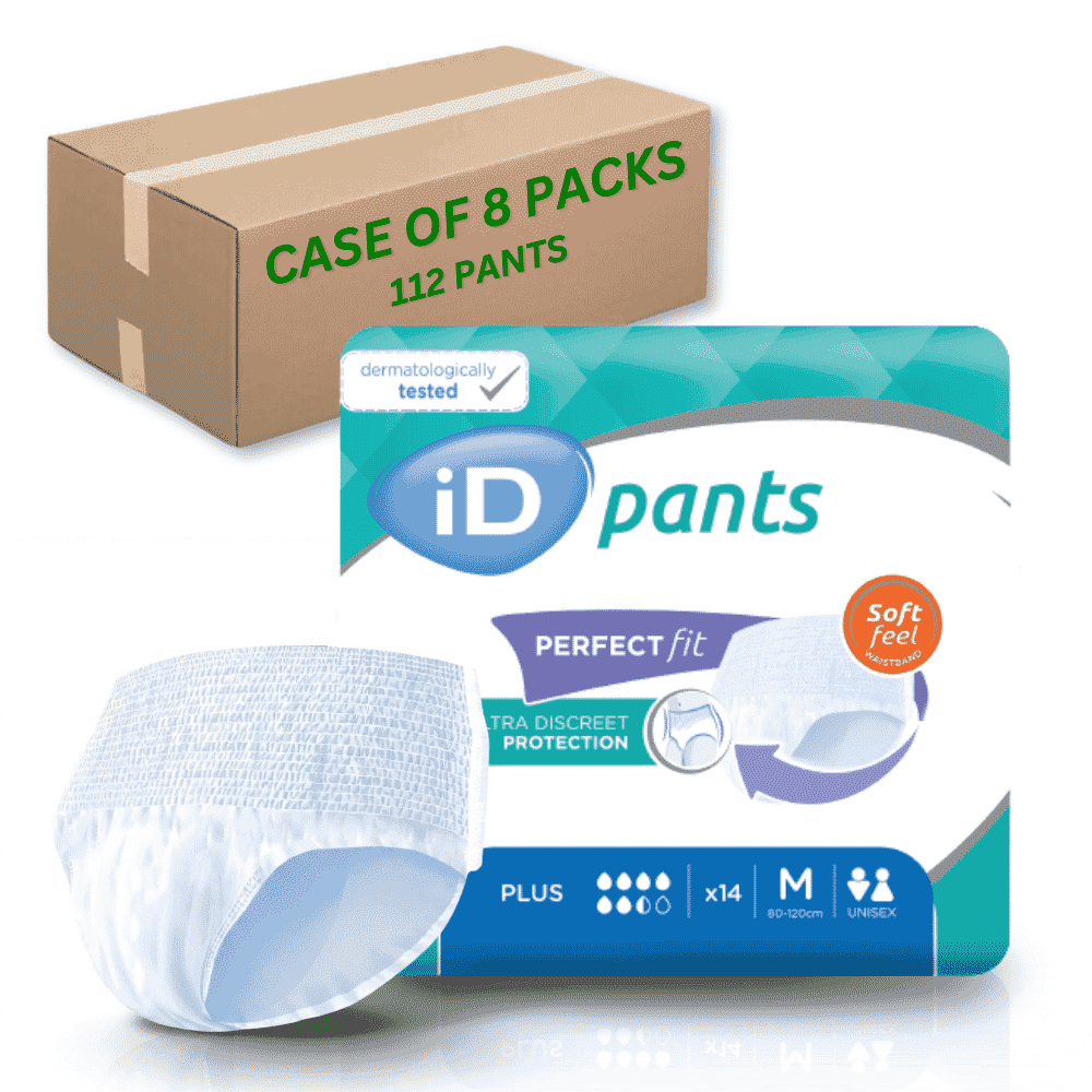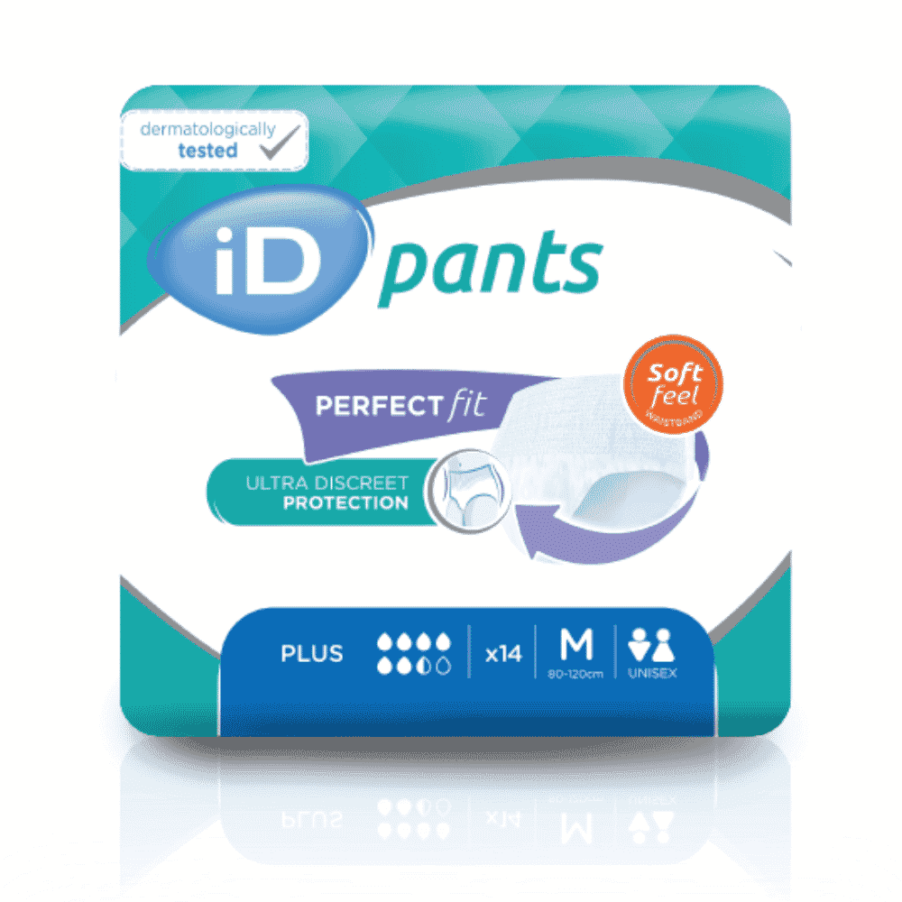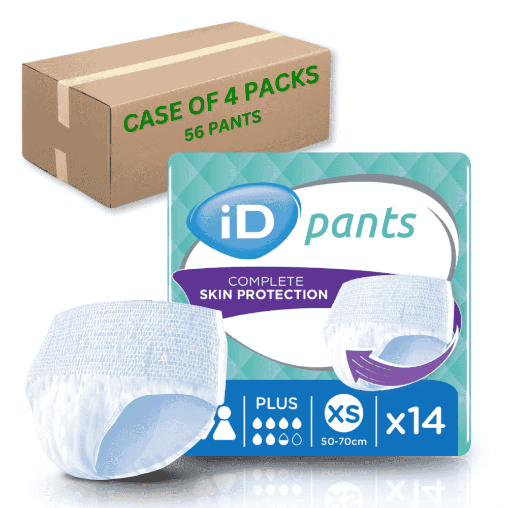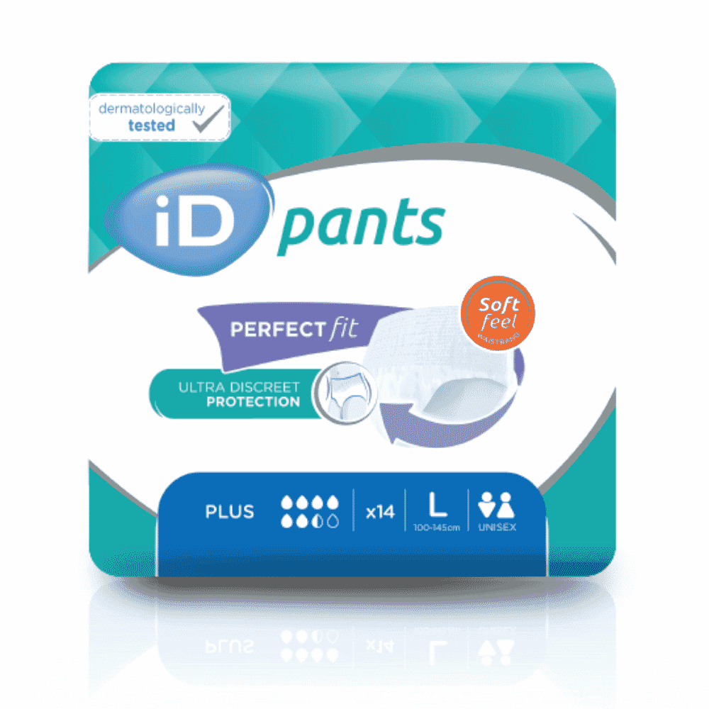 Les iD Pants Plus sont disponibles en cinq tailles, chacune fournie en paquets de 14, avec des options de caisses économiques pour les utilisateurs qui dépendent d'une protection quotidienne ou les aidants gérant les fournitures pour un membre de la famille.