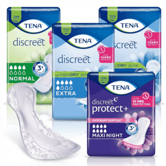 TENA Discreet est disponible dans une gamme de niveaux d'absorption pour répondre à différents besoins, allant de la protection légère quotidienne à une couverture nocturne plus élevée, avec des packs standard et des options économiques en gros pour plus de commodité et de valeur.