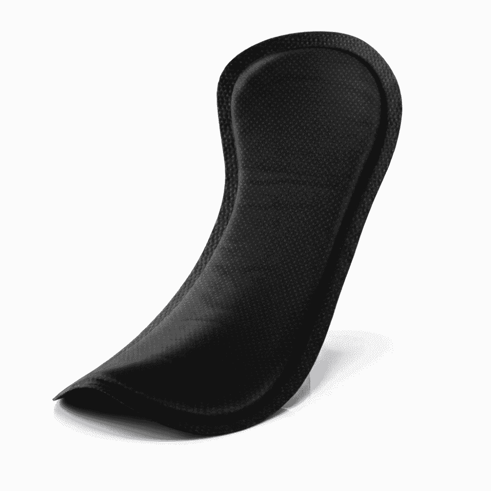 - Protège-slips noirs conçus pour s'harmoniser avec les sous-vêtements foncés.