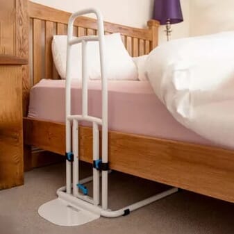 Avec une plaque de base basse et large et des pieds légèrement évasés, la Barrière de lit EasyFit Plus est un support robuste, encourageant la confiance.