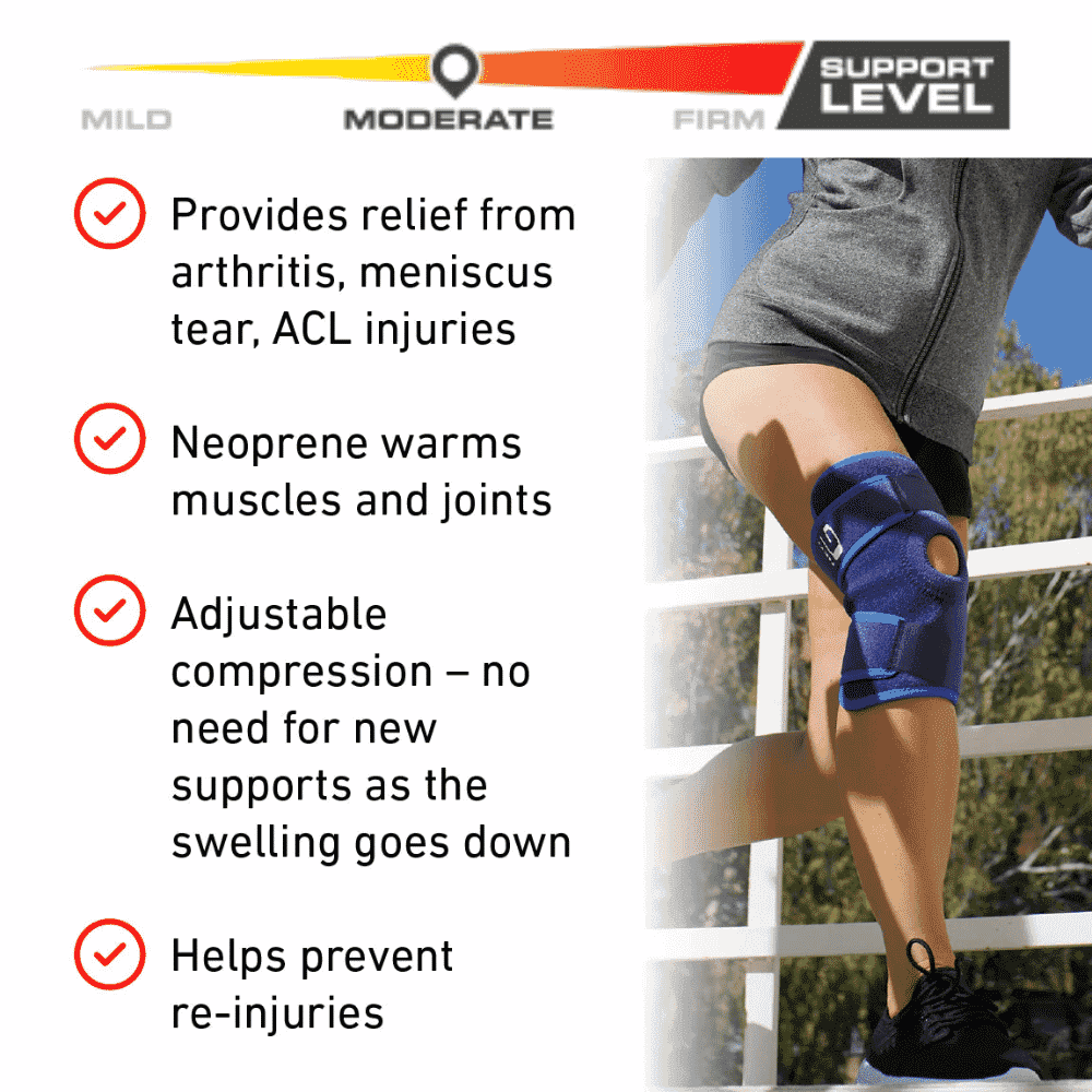 - Construction en néoprène offrant chaleur et compression pour aider à soulager la raideur