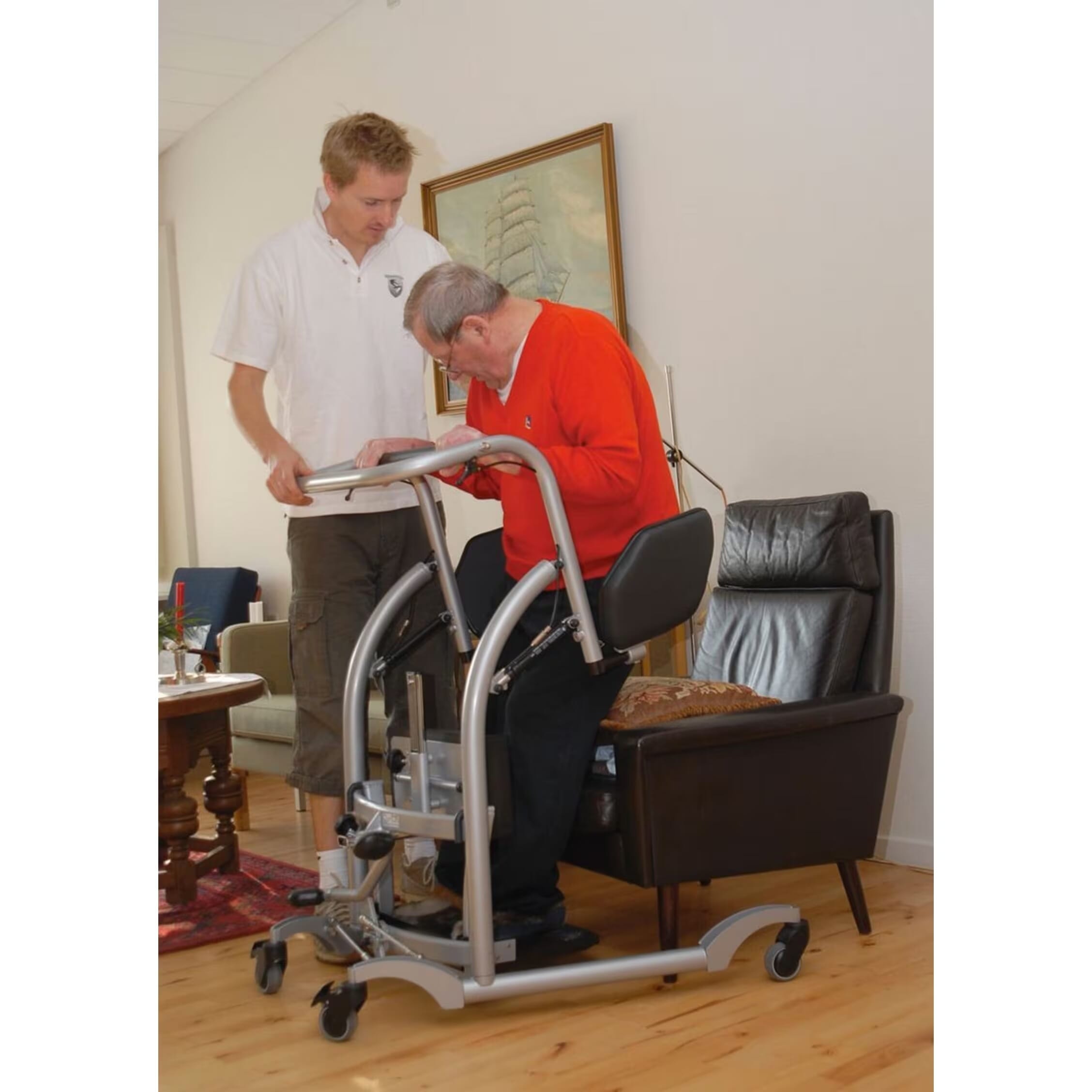 Très utile pour les personnes ayant des problèmes d’équilibre ou de force dans les jambes, le Quickmove est d’une grande aide pour faciliter les transferts assis-debout. Le patient doit être capable de saisir la barre afin de participer activement à son transfert. Il convient donc d’avoir suffisamment de force dans les bras pour pouvoir soulever le poids de son corps. Une fois celui-ci debout sur la plateforme, l’aidant peut régler le siège afin de l’asseoir confortablement pour le transférer sur une longue distance.