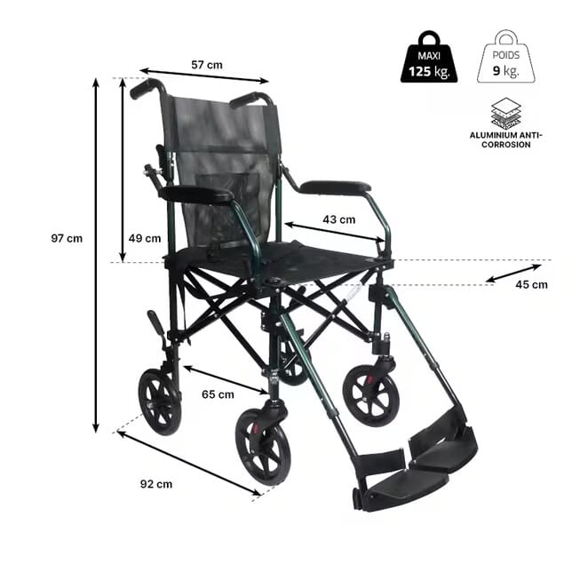 - Fauteuil roulant ultra-léger et pliable, idéal pour les voyages ou un usage occasionnel