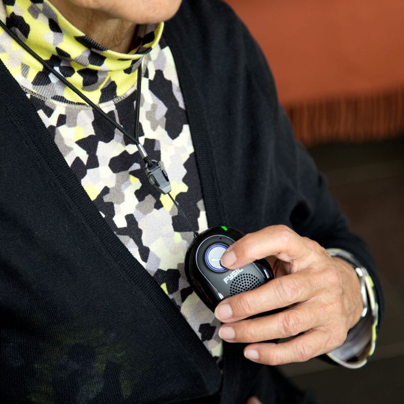 - Accessoires inclus : station de charge, cordon tour de cou et clip ceinture pour garder le médaillon à portée de main.
